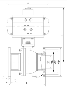 2. 90°旋转球阀,在气源压力的作用下,由活塞推动转轴带动阀杆运动,继而实现球阀的开关和调节。